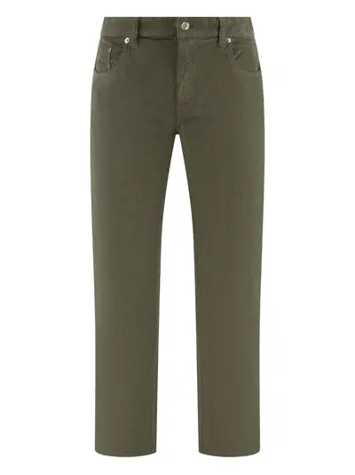 olive green corduroy texture belt loops five pockets rear patch pockets