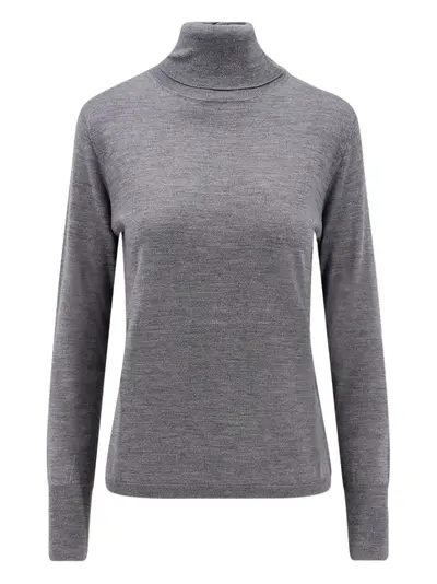 grey virgin wool roll neck long sleeves ribbed cuffs and hem