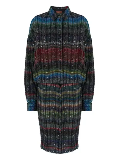black and multicolour sequin embellishment classic collar front button closure midi length horizontal stripes The item you receive may differ slightly from the item photographed. This is due to the artisanal nature with which all Missoni products are constructed.