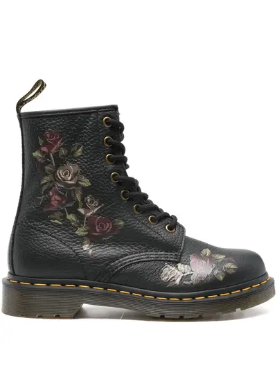black floral print front lace-up fastening pull-tab at the heel round toe branded insole