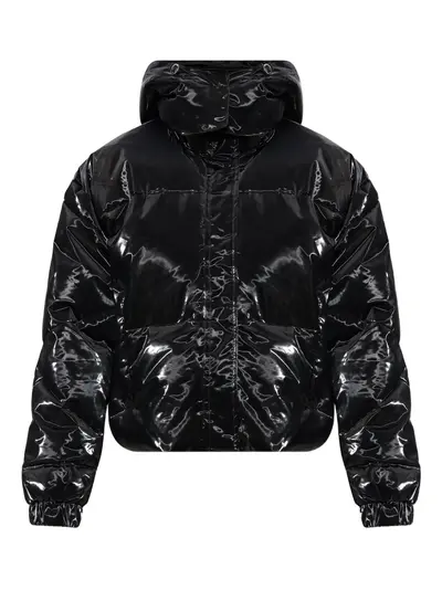 black padded design hood front pockets long sleeves elasticated cuffs