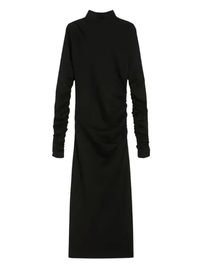 black roll neck long sleeves ruched detail