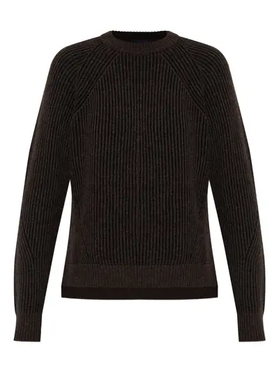 dark brown ribbed knit round neck long sleeves ribbed hem ribbed cuffs