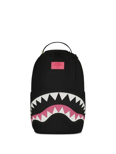 black shark mouth graphic padded laptop compartment top handle adjustable shoulder straps external pockets