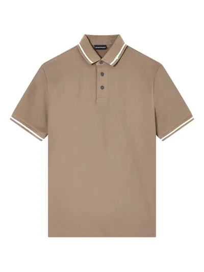 walnut striped trim button fastening short sleeves polo collar eagle logo detail