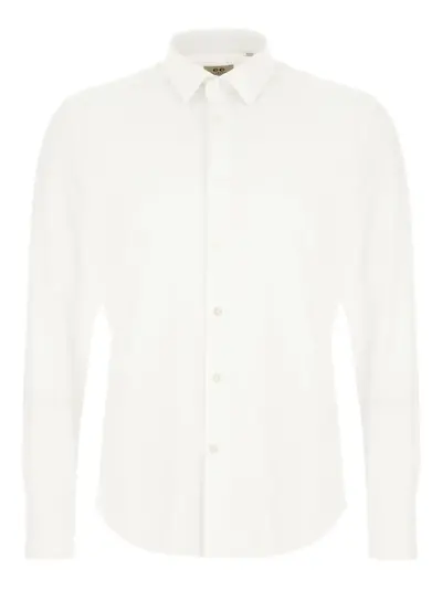 white button fastening long sleeves buttoned cuffs classic collar
