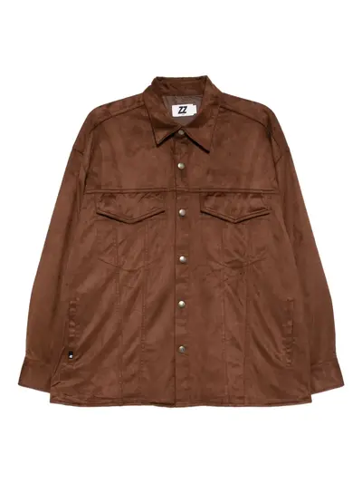 chocolate brown front button fastening two chest flap pockets long sleeves
