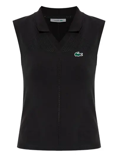 black V-neck logo appliqué sleeveless ribbed detailing straight hem