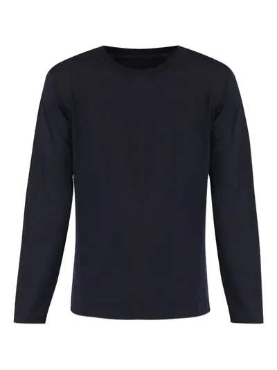 dark blue crew neck long sleeves logo lettering at the back straight hem