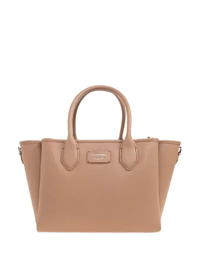 light brown top handles detachable shoulder strap grained texture zip fastening