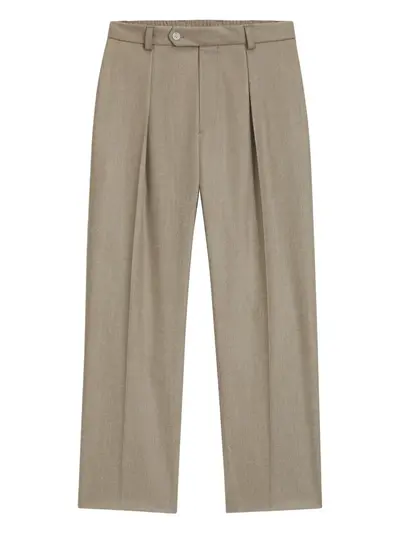 light brown wool pleated front button fastening straight leg mid-rise waist