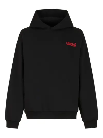 black cotton cartoon logo print dropped shoulders ribbed trims
