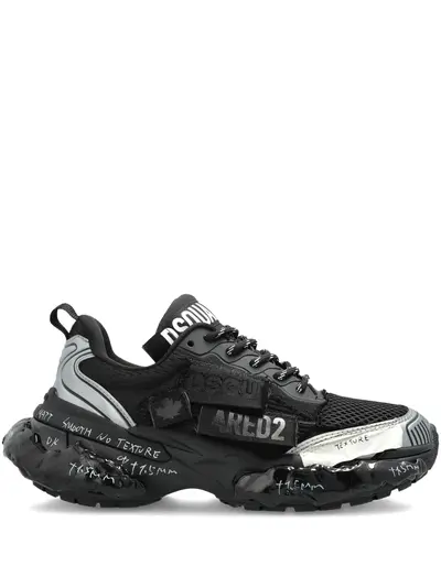 black logo lettering silver-tone trim pull tab at the heel lace-up fastening textured sole