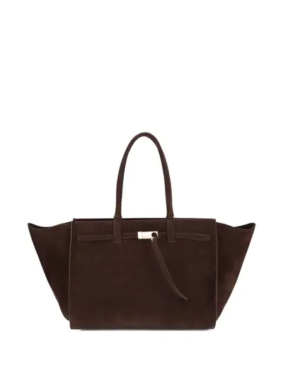 dark brown top handle gold-tone hardware buckle fastening strap detail rectangular shape