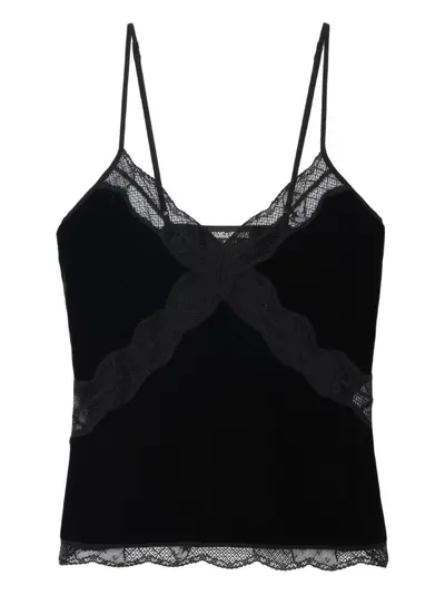 black lace trim velvet texture thin straps criss-cross lace detail straight hem