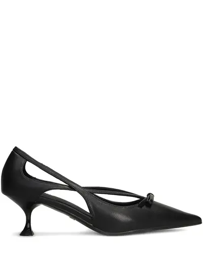 black pointed toe cut-out detail stiletto heel bow detail glossy heel
