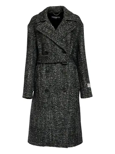 black herringbone pattern double-breasted button fastening belt long sleeves
