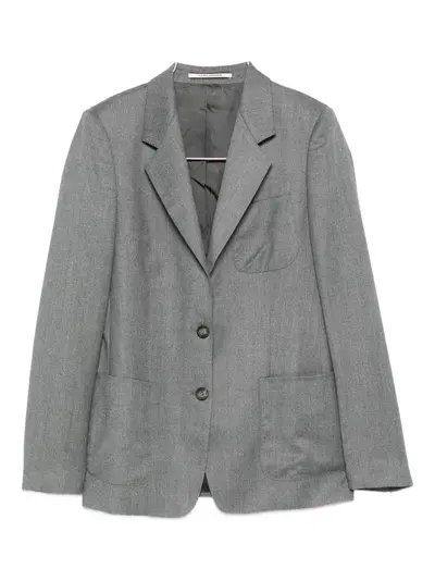 grey front patch pockets front button fastening notched lapels single-breasted long sleeves