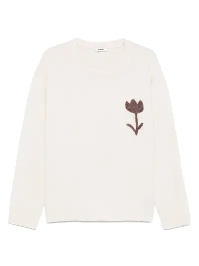 butter cream crew neck flower applique ribbed hem