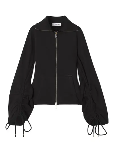black zip front fastening long sleeves drawstring cuffs gathered sleeves