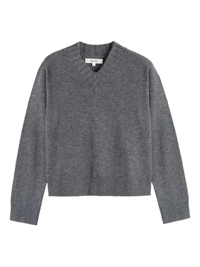grey ribbed neckline V-neck long sleeves ribbed hem wool