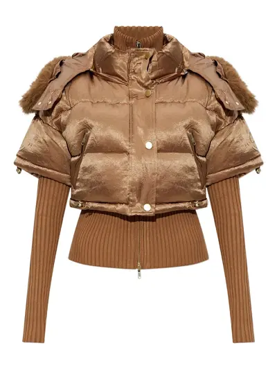 brown faux-fur trim zip fastening press-stud fastening front zip pockets