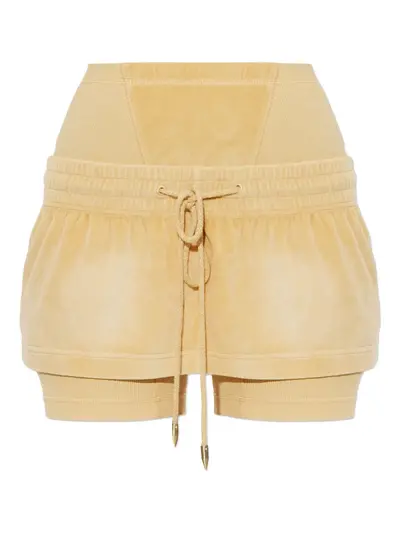 light yellow drawstring fastening gold-tone hardware layered design ribbed detailing embroidered logo