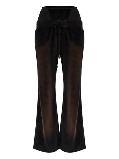 black drawstring fastening elasticated waistband velvet effect logo detail side pockets
