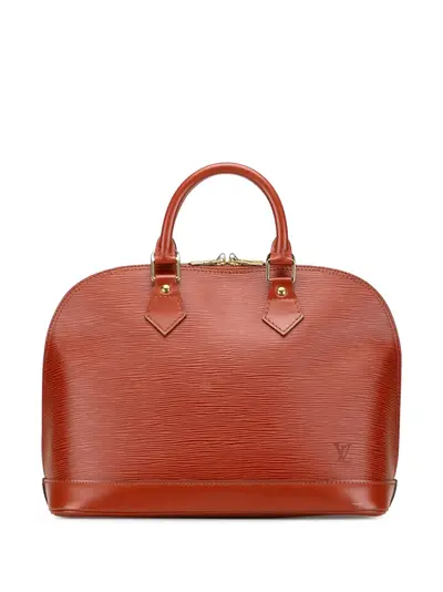 epi leather body rolled leather handles top zip closure interior slip pocket brown Serial Number: AR1916 This item has no inclusions. Condition: GOOD. This previously owned and used item is in good condition with minimal signs of use. This may include fading of material or plating and scratches. Due to the exclusivity of this item and its limited availability, processing and delivery might take longer than usual. Declared Damages: Handle/Strap Feature(s) Minor Loose Stitching. Please refer to the photos on this product page for a detailed view of the item, including any damages declared.