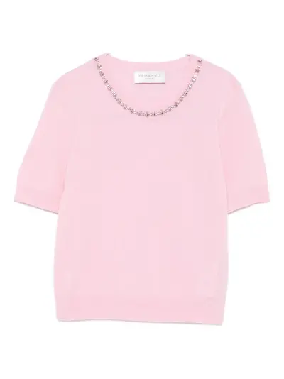 pink crystal embellishment short sleeves round neck