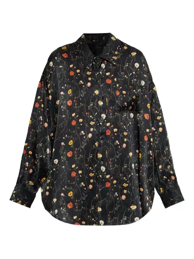 black floral print button fastening long sleeves chest pocket buttoned cuffs