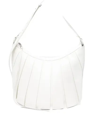 white leather pleated design adjustable top handle top zip fastening logo detail
