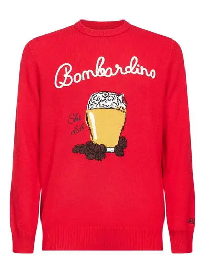 red ribbed crew-neck long sleeves beer motif embroidered lettering ribbed cuffs ribbed hem