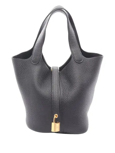 Clemence leather body in Noir color flat leather handles open top with a pull through strap closure black Inclusions: dust bag, padlock, key. Condition: UNWORN. This item is previously owned but remains unworn and in its original condition. However, it does not come with its original tags. Due to the exclusivity of this item and its limited availability, processing and delivery might take longer than usual. Please refer to the photos on this product page for a detailed view of the item, including any damages declared.