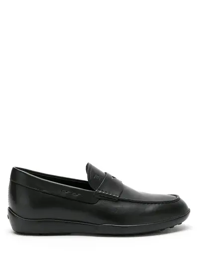 black calf leather penny slot debossed logo round toe signature Gommino sole