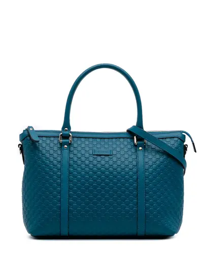 embossed leather body rolled handles detachable flat strap top zip closure interior zip and slip pockets blue Serial Number: 449656 490079 Inclusions: shoulder strap, dust bag. Condition: EXCELLENT. This previously owned item is in near-perfect condition with no signs of damage or use. Please refer to the photos on this product page for a detailed view of the item, including any damages declared.