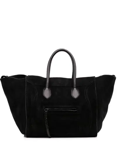 suede leather body rolled leather handles open top exterior front zip pocket interior zip pocket black Serial Number: F-GM-0141 This item has no inclusions. Condition: FAIR. This previously owned and used item is in fair condition with visible signs of use. This may include fading of material or plating, loose stitches, discolouration, patina or heavy scratches. Declared Damages: Interior Pocket Feature(s) Moderate Splitting. Please refer to the photos on this product page for a detailed view of the item, including any damages declared.