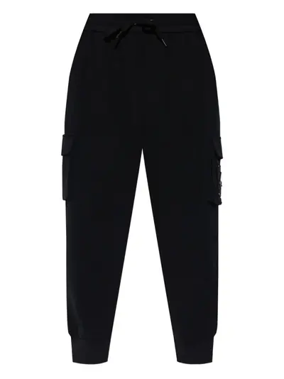 black drawstring fastening side cargo pocket logo plaque elasticated hem