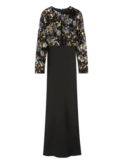 black sequin embellishment long sleeves round neck concealed zip fastening floor length
