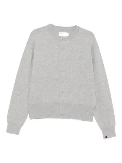 light grey round neck front button fastening long sleeves ribbed hem ribbed cuffs
