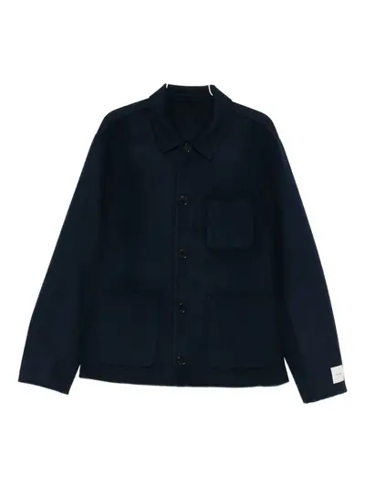 dark blue front button fastening three front patch pocket long sleeves