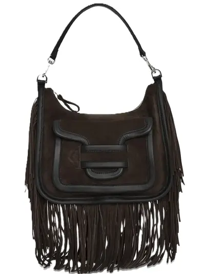 brown leather trims zip closure adjustable removable strap flap pocket at the front interior pocket