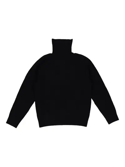 black wool turtleneck ribbed cuffs and hem