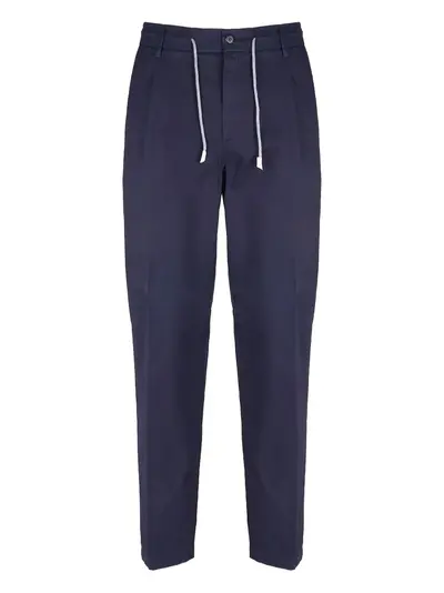 blue drawstring fastening button fastening pleated belt loops side seam pockets