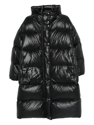 black front press-stud fastening classic hood quilted long sleeves side pockets