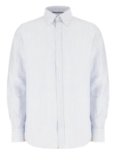 blue and white striped button fastening button-down collar long sleeves buttoned cuffs