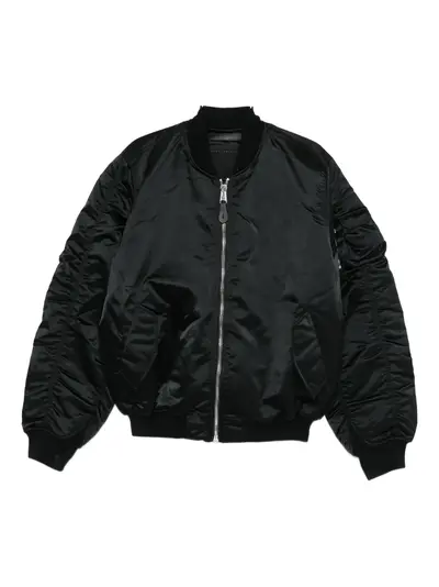 black zip fastening ribbed hem ribbed cuffs gathered sleeves side flap pockets