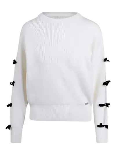 white tie detail ribbed knit crew neck long sleeves ribbed hem