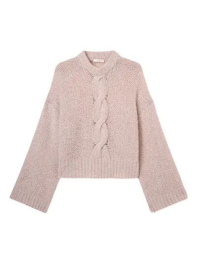 light pink cable knit crew neck wide sleeves relaxed fit boxy shape