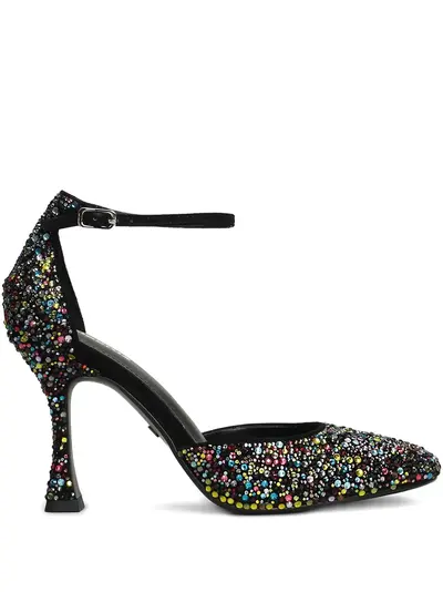 black embellishment ankle strap pointed toe stiletto heel buckle fastening